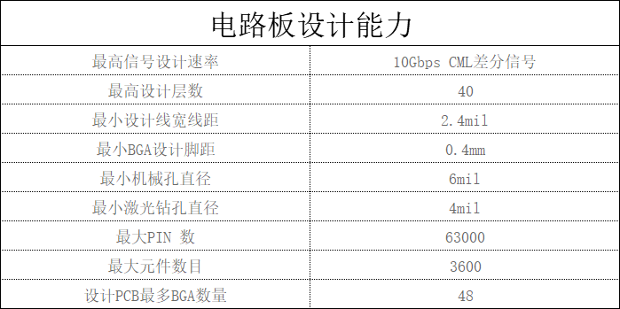 设计包含:高速、高频、大功率、模拟、数字混合、HDI、FPC、软硬结合板等设计类型